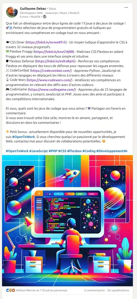 Comme je l’évoquais dans mon précédent article « Article WordPress Vs post LinkedIn », un blog offre plus de possibilités en termes de mise en forme, de liberté d’expression, et d’autres avantages que l’on n’a pas sur les réseaux sociaux.